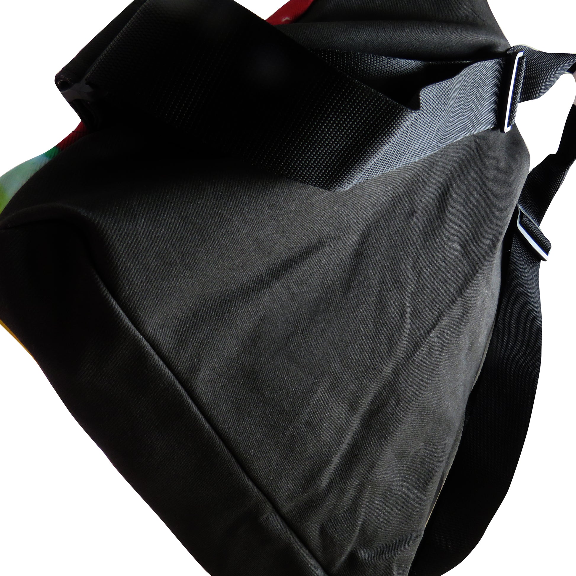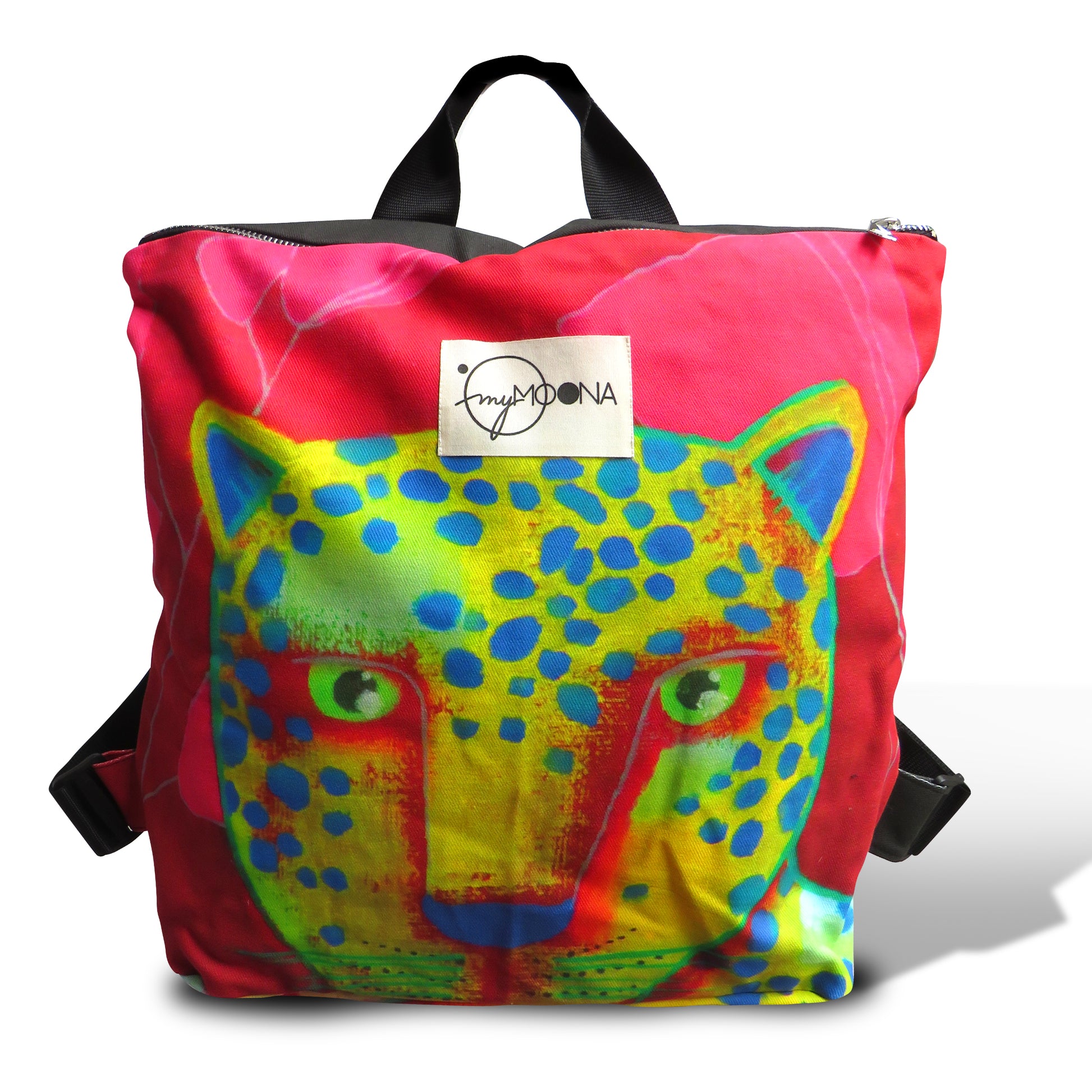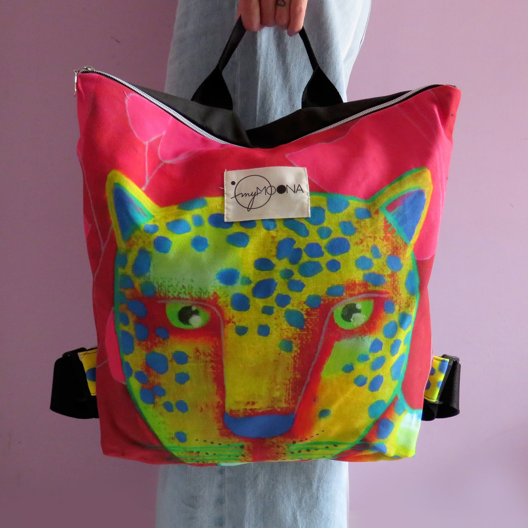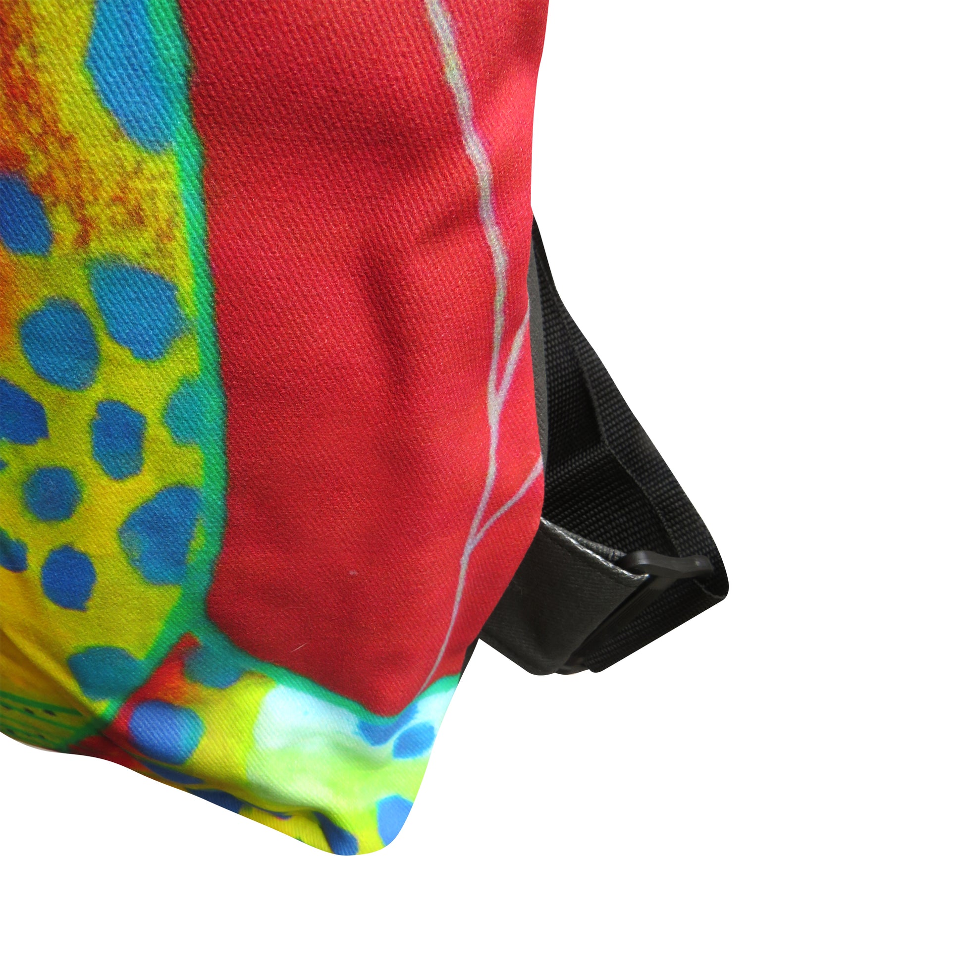 Zaino in cotone 380 gr, bretelle regolabili, chiusura superiore con cerniera, fodera interna, 45cm x 45cm circa.