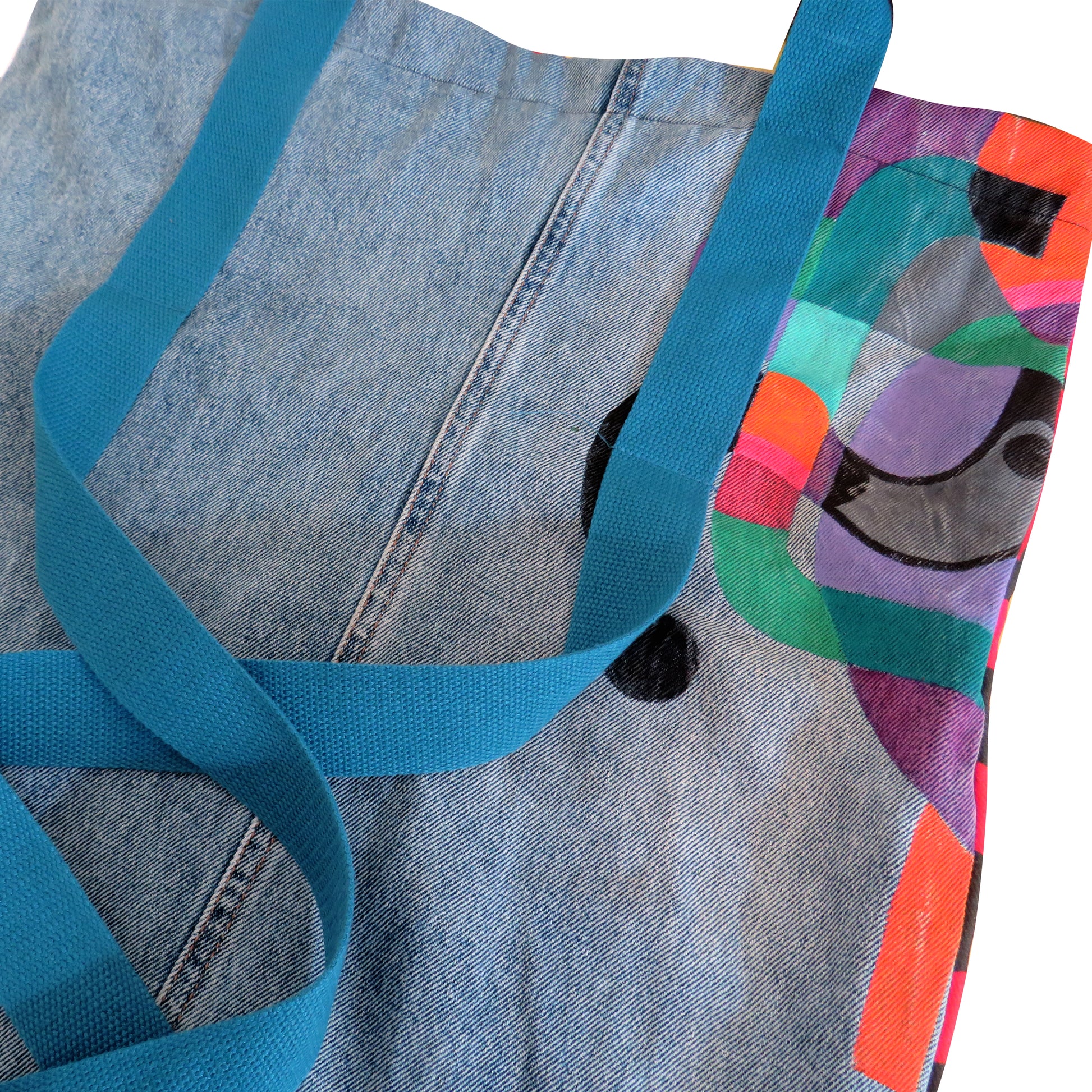 Zaino in cotone e denim, tracolle in cotone regolabili, fodera interna, zip nella parte superiore.